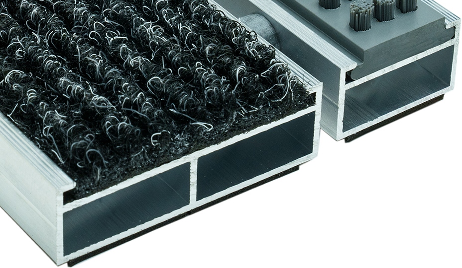 Aufrollbare Aluprofilmatte im Wechsel (1:1) mit einer Bürsteneinlage und Ripseinlage. Die klassische Feinschmutz- und Grobschmutzentfernung in extra breiten Profilen für Ihren Eingangsbereich.