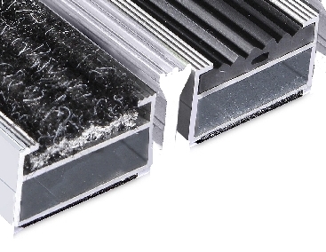 Die Aluprofilmattenunterseite ist mit einer Trittschalldämmung aus einem Schaummaterial versehen. Dies sorgt für ein geräuschloses Begehen unserer Eingangsmatten.
