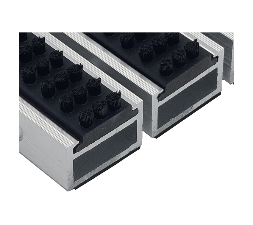 3-reihig eingelassene widerstandsfähige und witterungsbeständige Bürsteneinlage