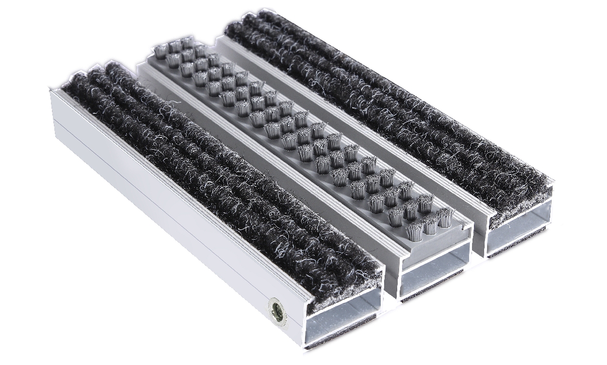 3-reihig eingelassene widerstandsfähige und witterungsbeständige Bürsteneinlage
