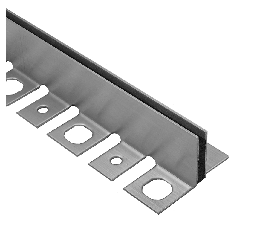 - Zweiteiliges Edelstahlprofil mit aufkaschierter Neopreneinlage.