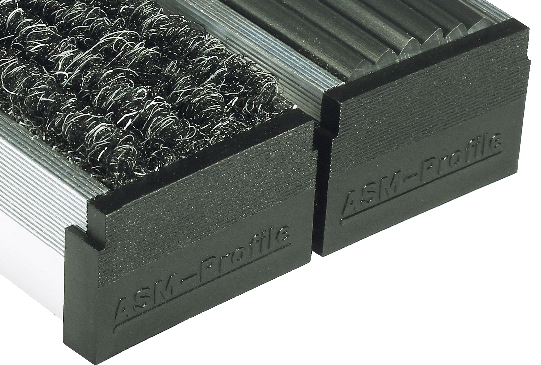 Eine Trittschalldämmung aus Kunststoff ist auf der Unterseite der Aluminiumprofile eingezogen. Dies sorgt für ein geräuschloses Begehen unserer Eingangsmatten. Die Aluminiumprofilenden sind mit schwarzen Endkappen versehen.