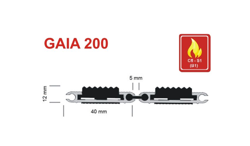 Die Verbindung der einzelnen Aluminiumprofile wird bei diesen Aluprofilmatten mittels eines gelochten, schwarzen Kunststoffverbinders hergestellt. Die Langlöcher weisen hierbei einen Durchmesser von ca. 4 mm auf. Abgestreifte Schmutzpartikel werden so beim Aluprofilmattentyp GAIA 200 zwischen die Aluminiumprofile befördert und können dort entfernt werden. Als Sonderausführung ist diese Kunststoffprofilschnur auch ohne Löcher erhältlich. (Hierbei ist auf eine vermehrte Reinigung des Reinstreifers zu achten.)