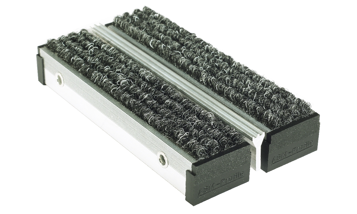 Eine Trittschalldämmung aus Kunststoff ist auf der Unterseite der Aluminiumprofile eingezogen. Dies sorgt für ein geräuschloses Begehen unserer Eingangsmatten. Die Aluminiumprofilenden sind mit schwarzen Endkappen versehen.