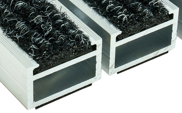 Die Aluprofilmattenunterseite ist mit einer Trittschalldämmung aus einem Schaummaterial versehen. Dies sorgt für ein geräuschloses Begehen unserer Eingangsmatten.