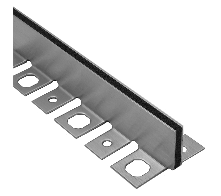 - Zweiteiliges Edelstahlprofil mit aufkaschierter Neopreneinlage.