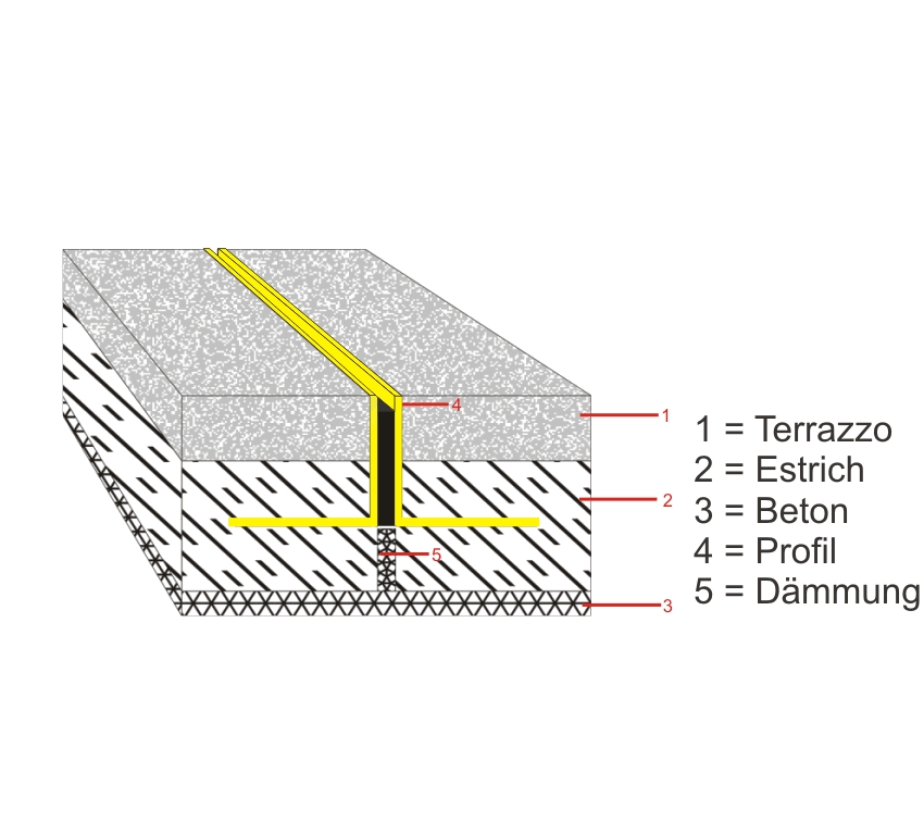 Unsere Terrazzoprofile werden mit einer 10 mm starken Neopren-Einlage in den Farben grau oder schwarz kraftschlüssig verklebt. Die durch die verwendete Neopren-Einlage entsprechende Bewegungsaufnahme beträgt: 2 mm + / -4 mm. Die angegebenen Belastungen sind nur bei Verwendung der Montageanleitung von ASM-Profile gewährleistet.